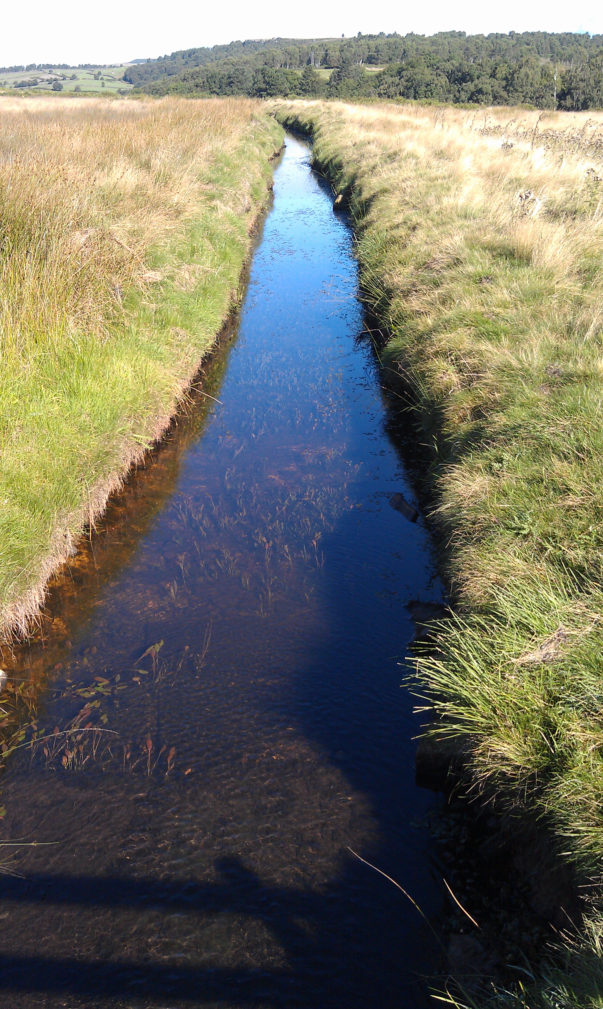 This is an aqueduct that traverses the hillside before cutting round the end of the ridge and across the reverse slope until it reaches the Emperor Lake. It takes water from the Umberley Brook, and anything else that drains into it along the way, to the Emperor Lake where it is then used in the Chatsworth House Emperor Fountain. A remarkable feat of surveying and engineering.