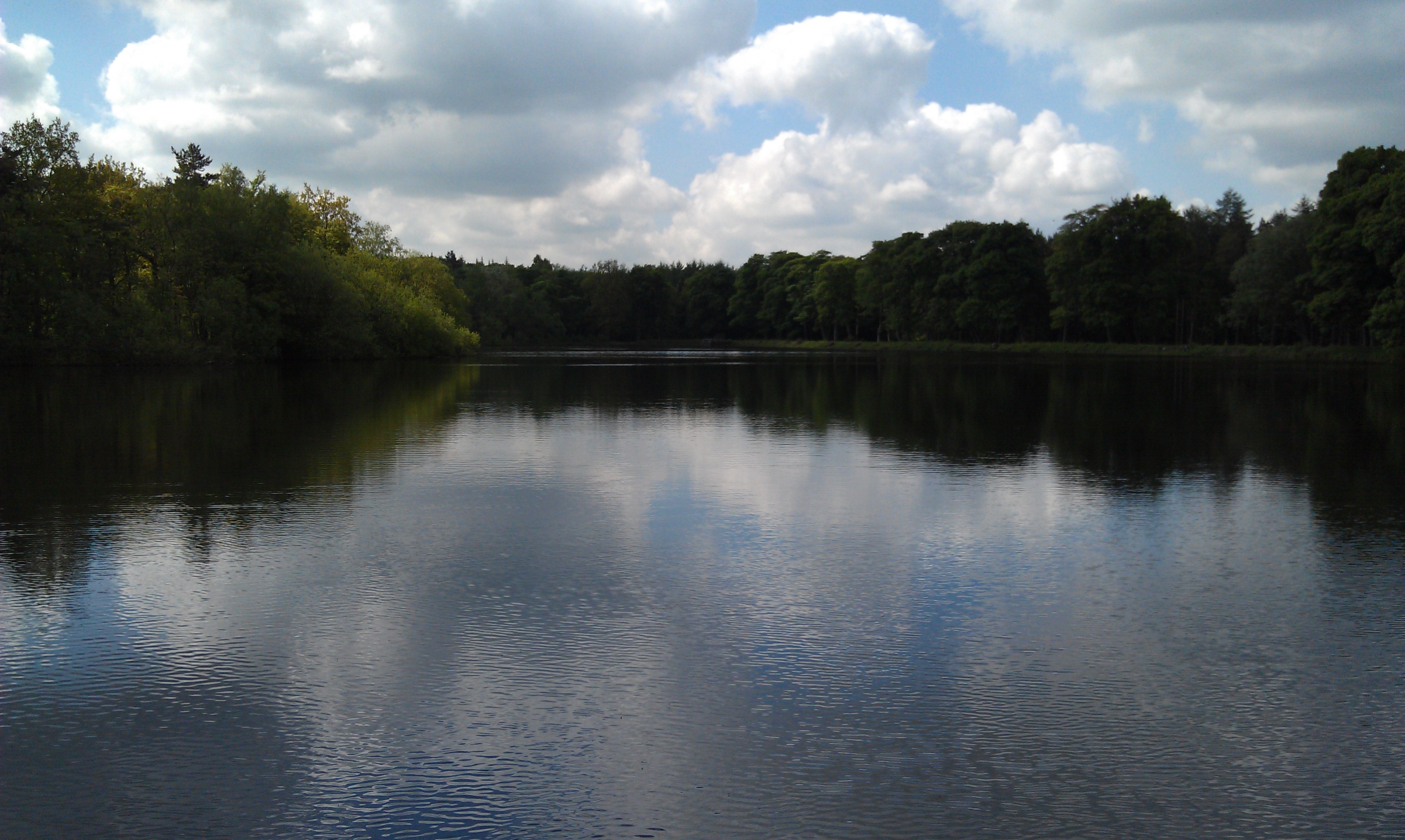 Come down the right hand (west) edge of the lake and pick up the path following the sound of falling water to the stream that eventually becomes the Cascade through the Chatsworth House Gardens.
