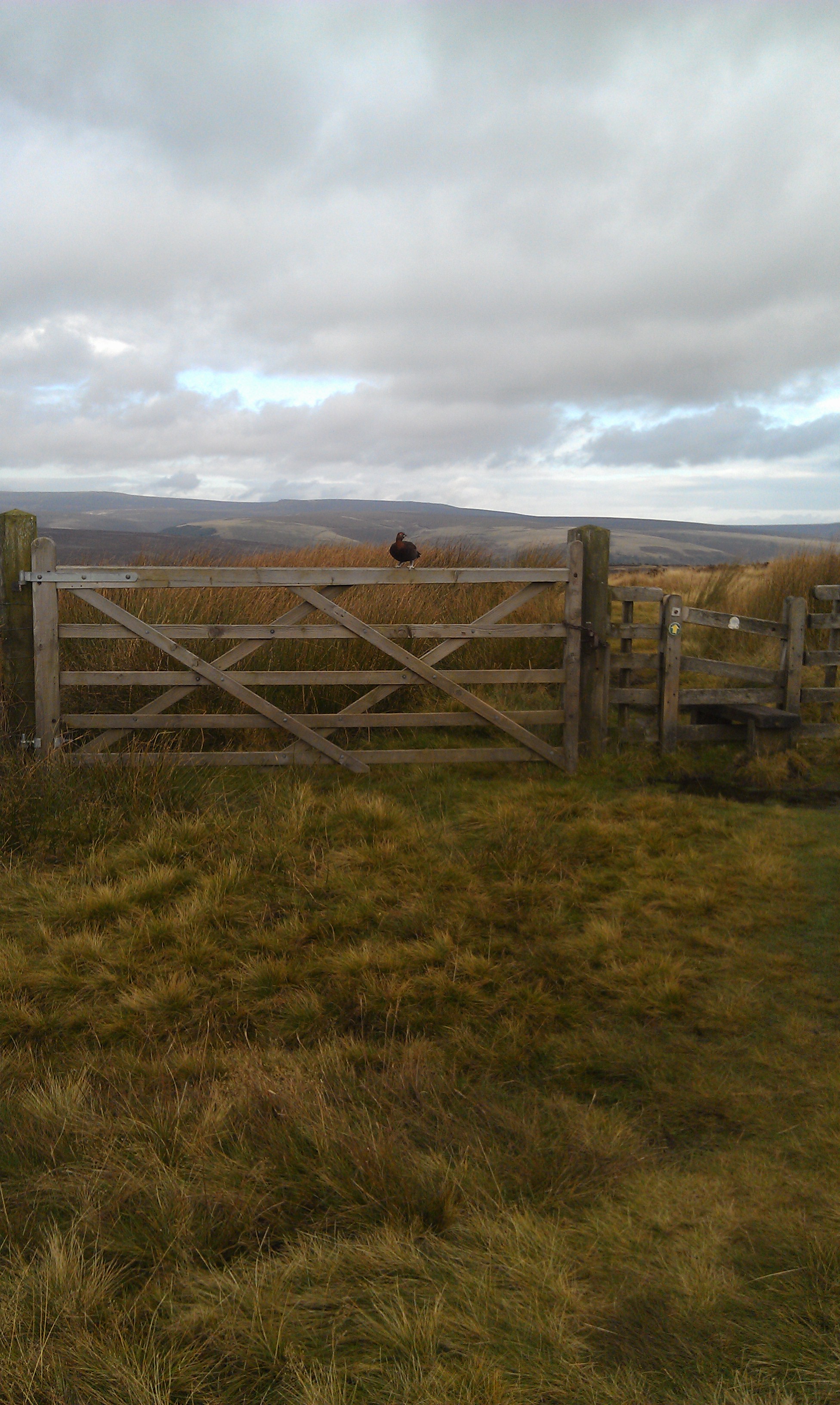 We continued on the track along the hill top until we got level to Millbrook Plantation on our right, and then cut left to follow the path across the hill side towards the ruin of Bamford House.