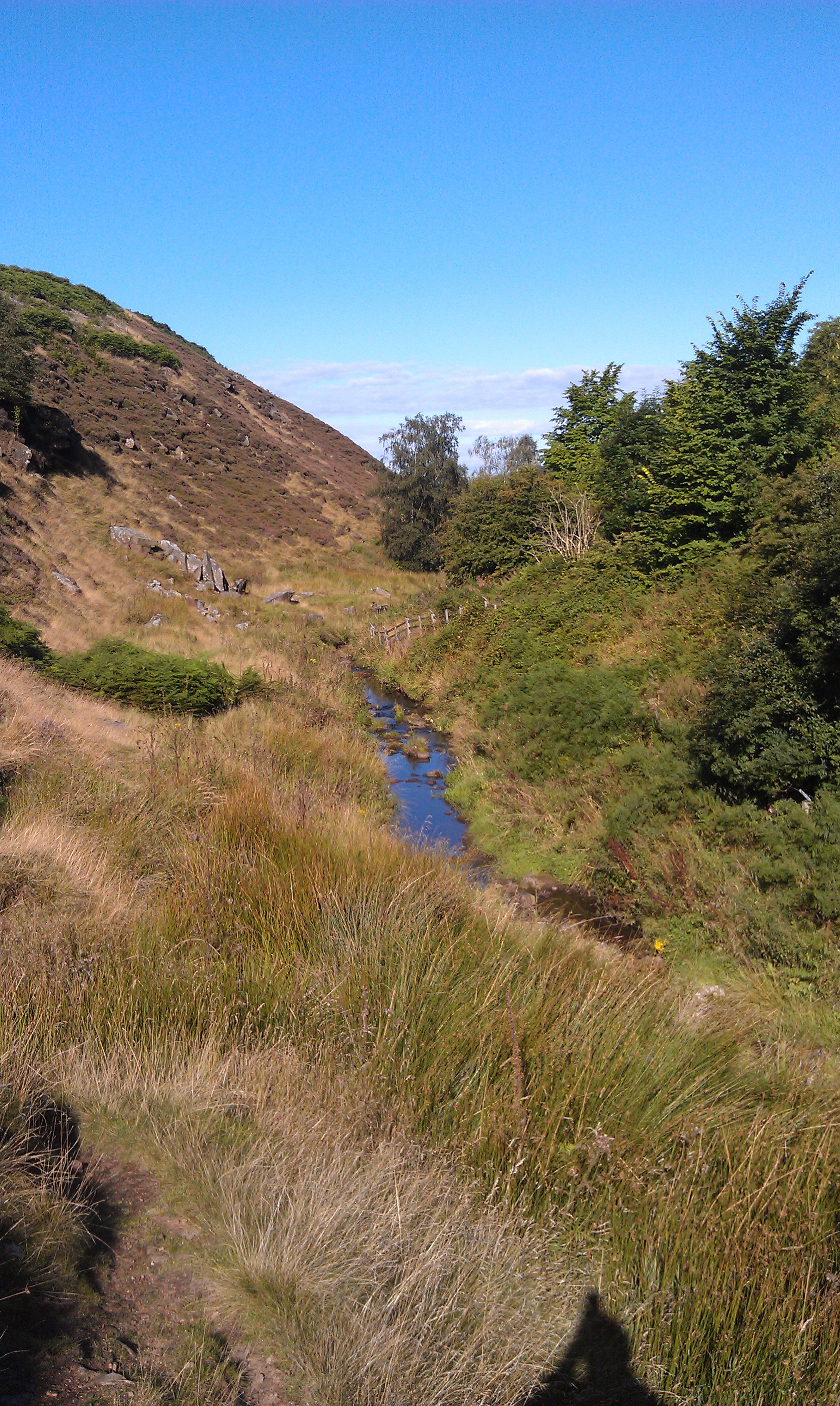 The initial leg is across the hill slope before dropping into a steeply sloped valley, where we stayed high up away from the brook, before breaking away onto flatter ground.