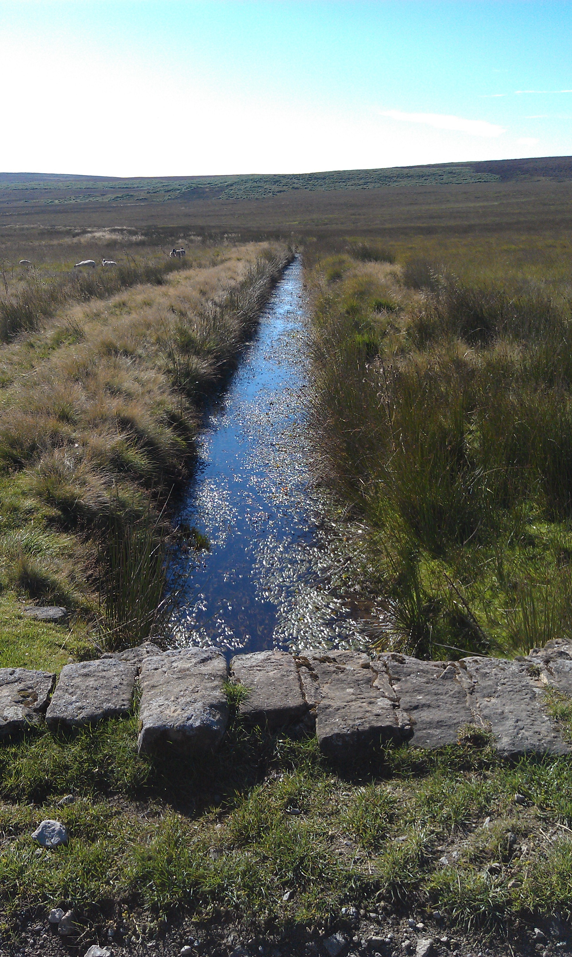 This is an aqueduct that traverses the hillside before cutting round the end of the ridge and across the reverse slope until it reaches the Emperor Lake. It takes water from the Umberley Brook, and anything else that drains into it along the way, to the Emperor Lake where it is then used in the Chatsworth House Emperor Fountain. A remarkable feat of surveying and engineering.