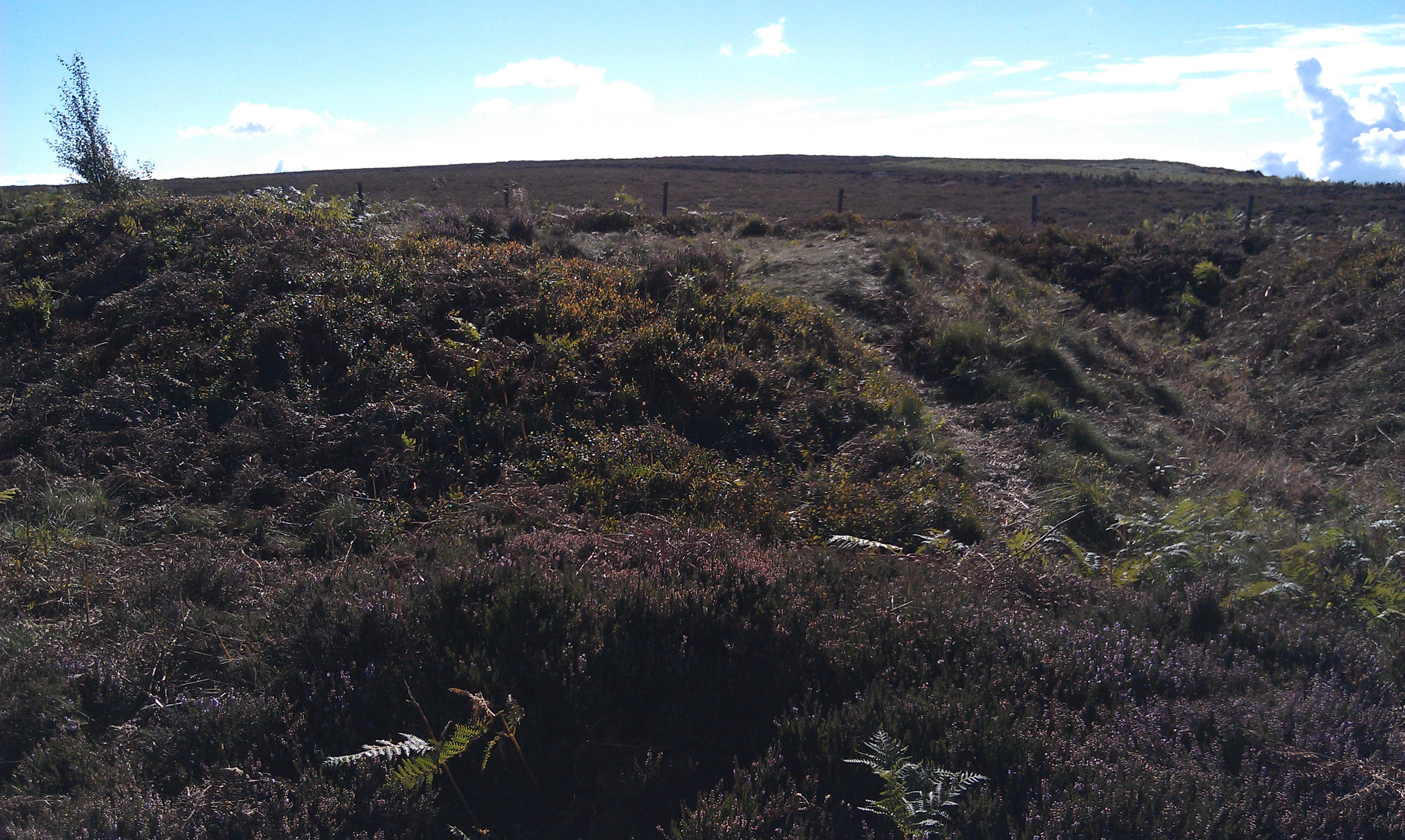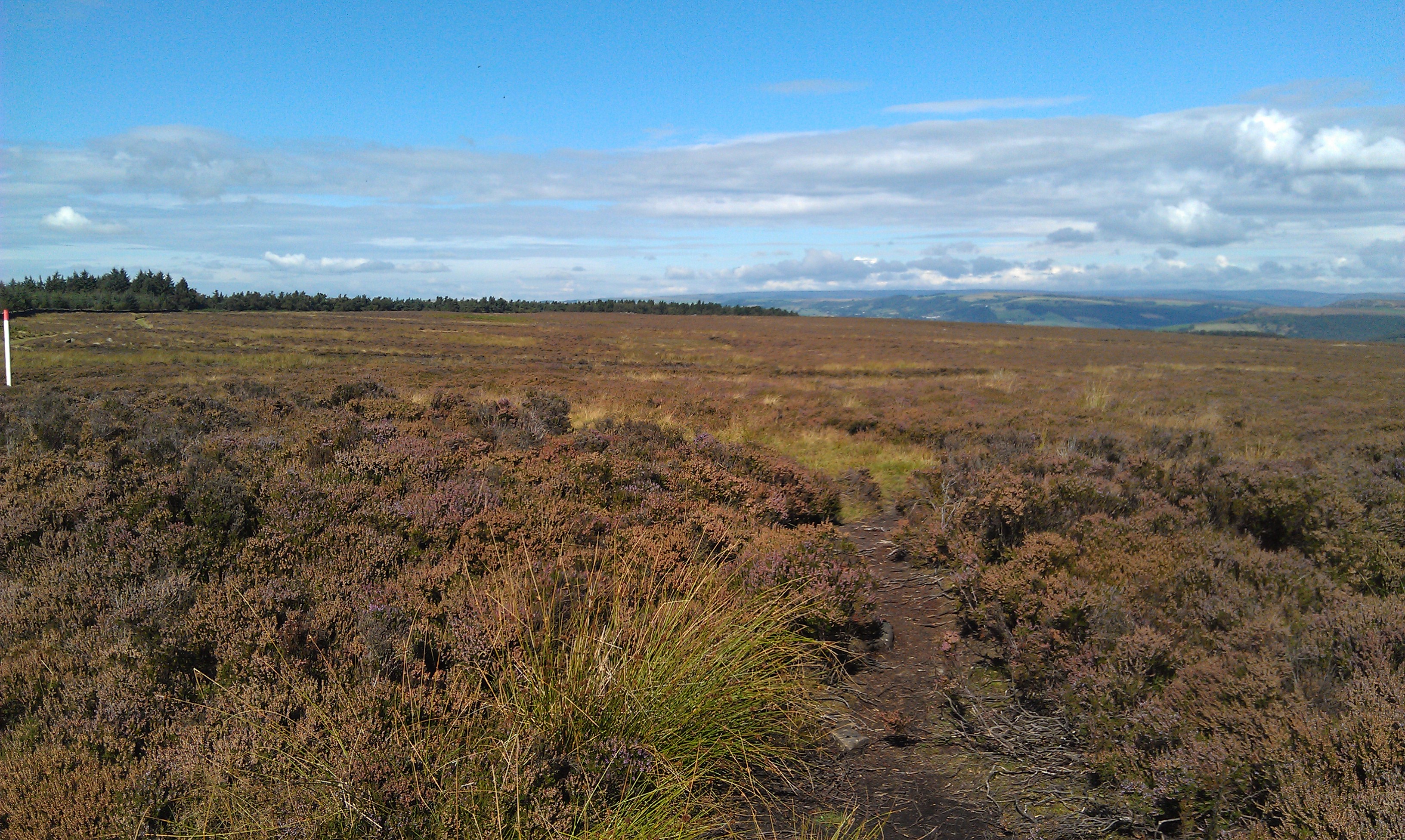 We turned right and followed the track uphill around the edge of Gibbet Moor and Bunkers Hill Wood to the top of the hill at the NE start of Harland Edge. Bit of a slog on the gravel, but the track turned grassy along the wood making for more pleasant walking, especially for the dog.
