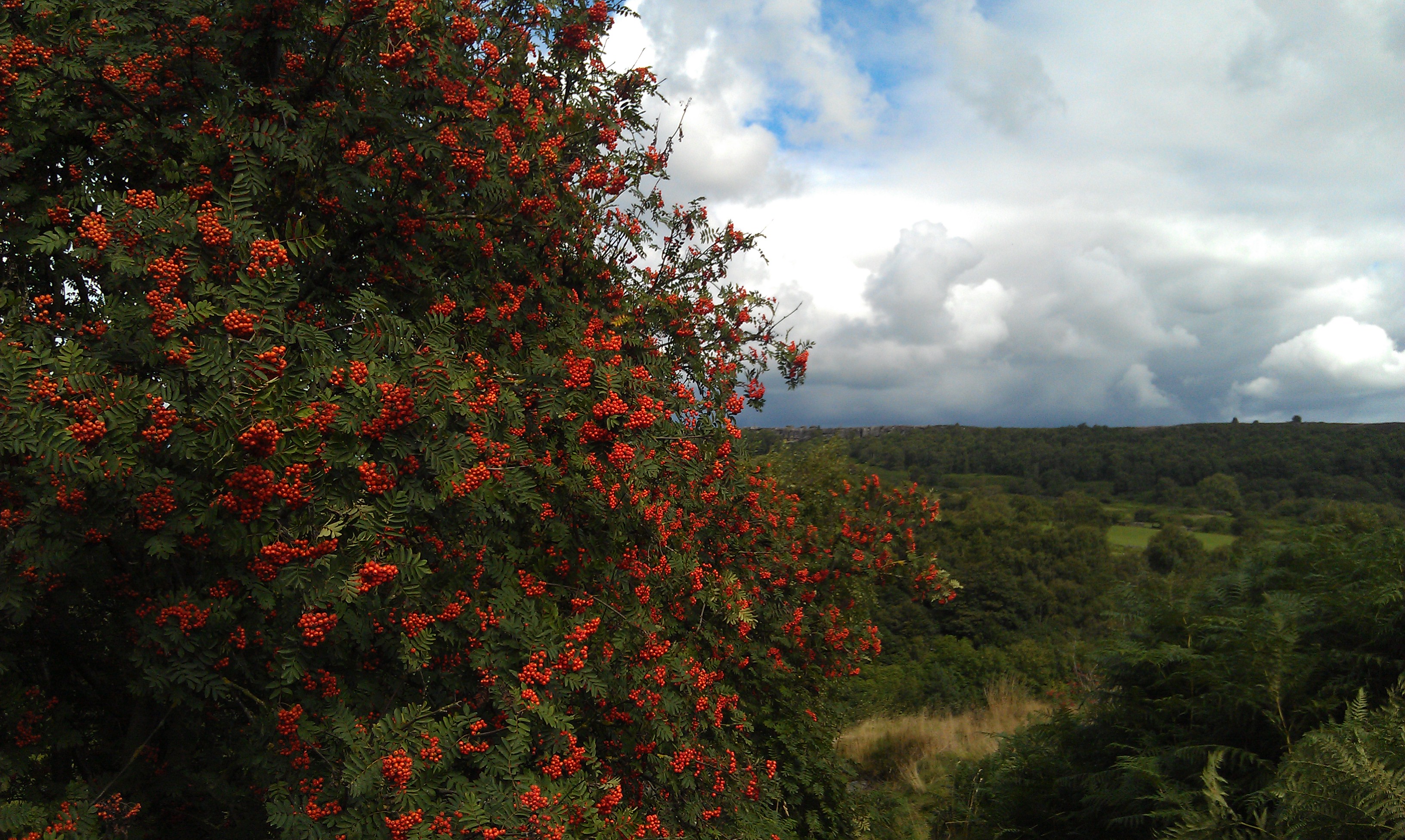 Previously we followed tracks through the wood that took us to Swiss and Emperor Lakes, but this time we followed one that followed the edge and allowed us to peek out at the view from the top of the Cascade, before leading past the Hunting Tower and onto Dobb Edge where we made our way back to the Robin Hood, admiring the display made by the rowan trees and their red berries.