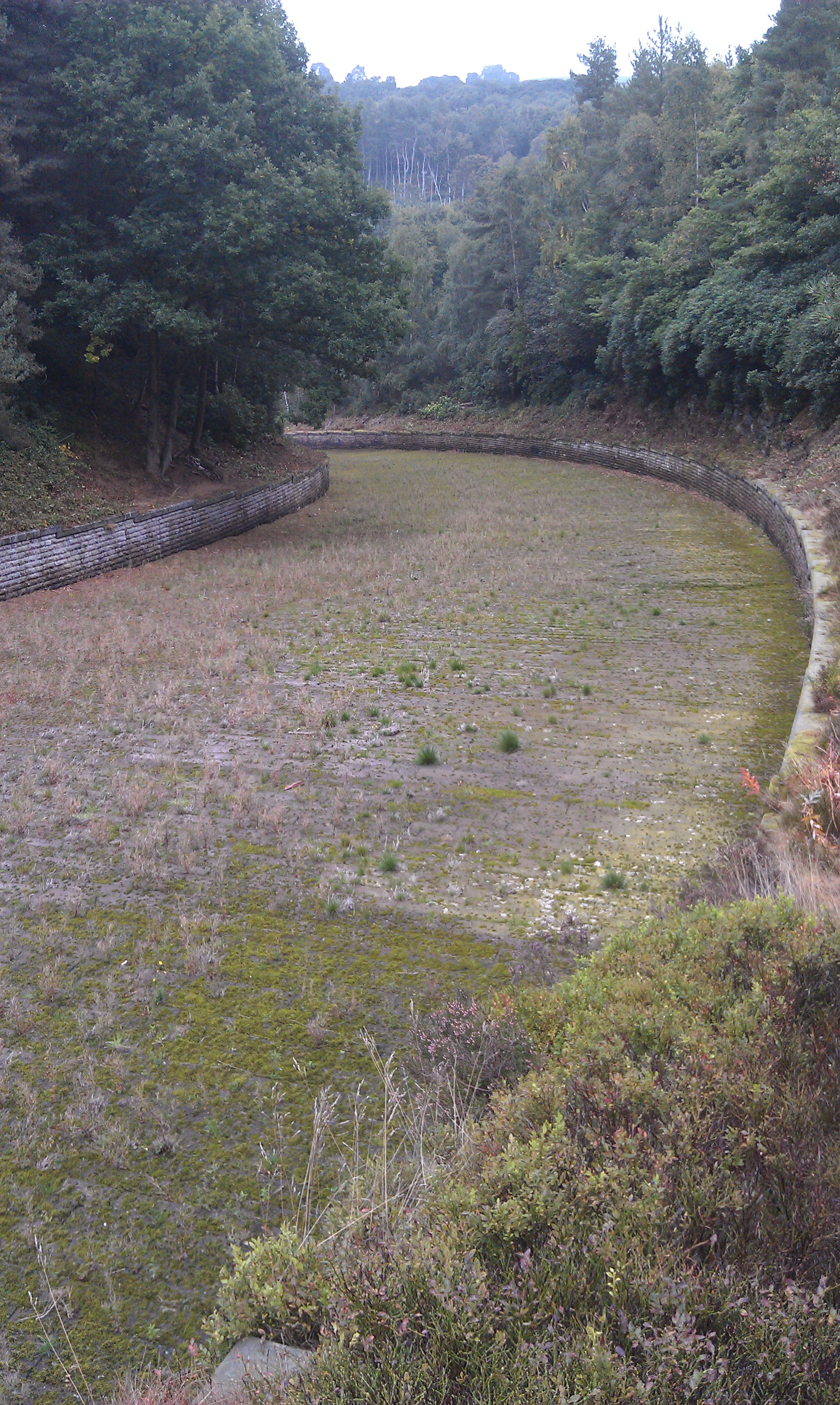 Here the path split. Left was a permissive path along the southern/eastern side of Dale Dyke Reservoir, whilst right took us on the public footpath round the dam and spillway and across the valley. Looks like it had been a long time since any water flowed over that spillway!