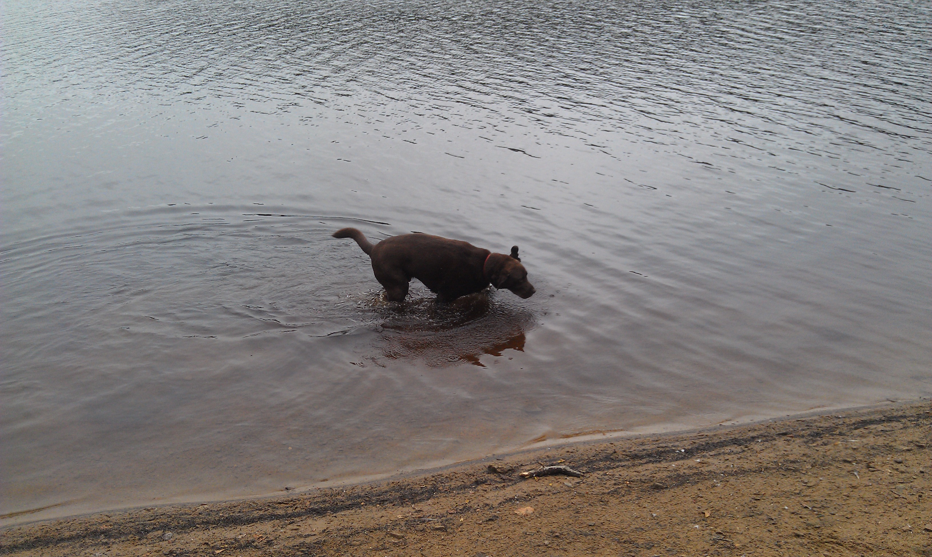 It may appear from the track on the map that we walked on water, but the tide was out and we walked along the shoreline so Harvey could have a splash and drink.