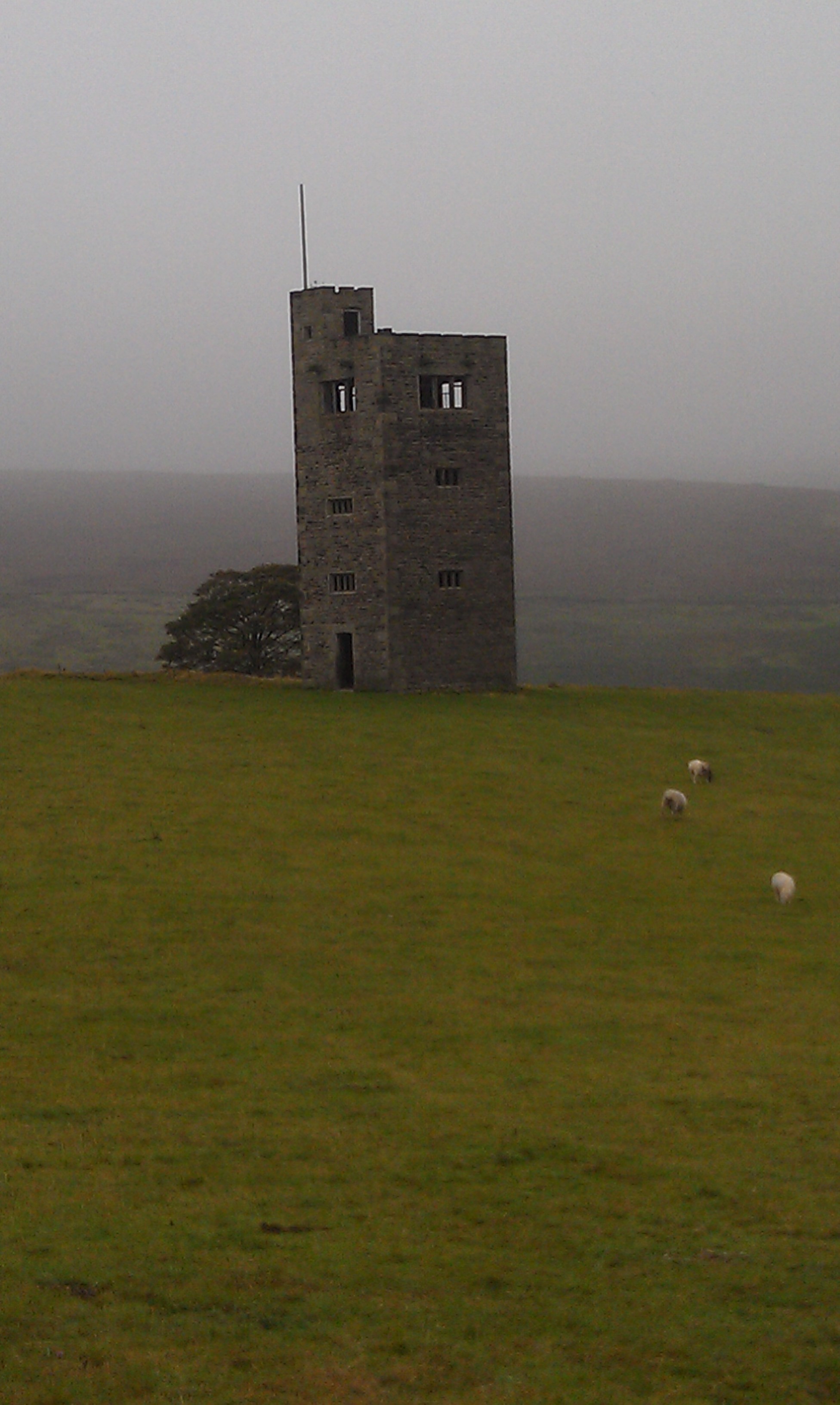 Some say the tower, a folly, was built to allow the local squire to gaze over the trees and slopes upon his daughter's grave down the valley in the village.