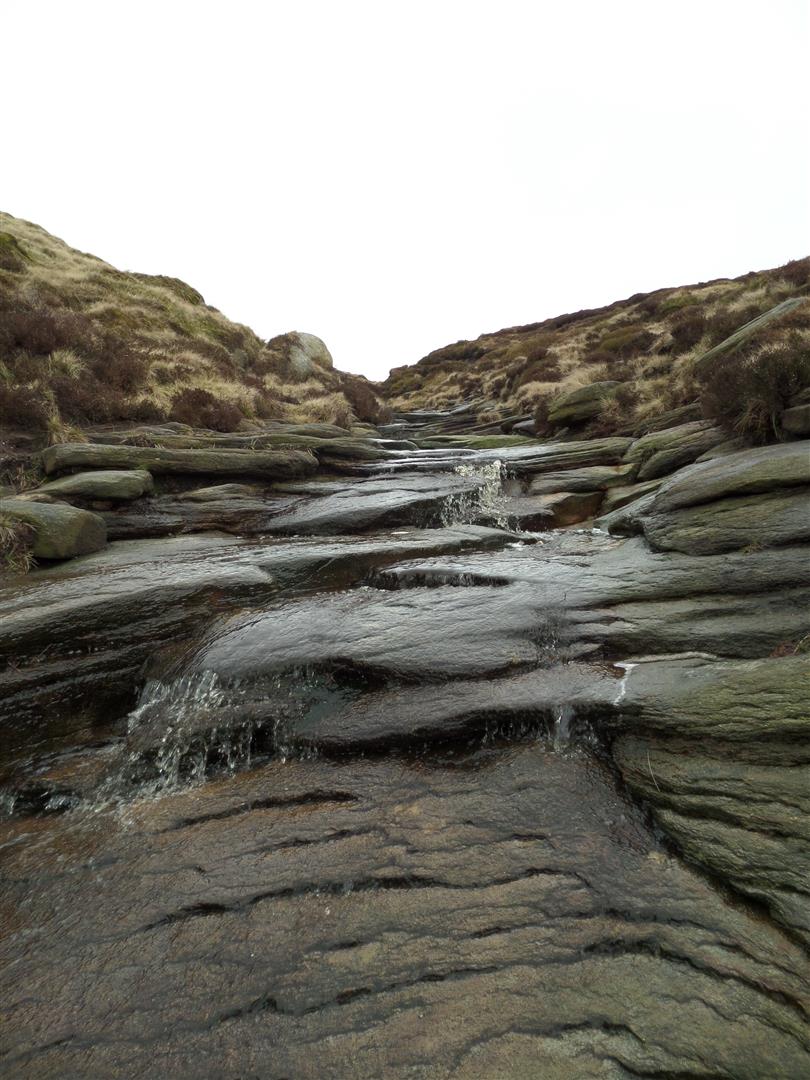 The original route then heads north, following Crowden Brook and it's head waters and across the open moor to Kinder Downfall - a waterfall that frequently flows upwards as the westerly winds hit it!