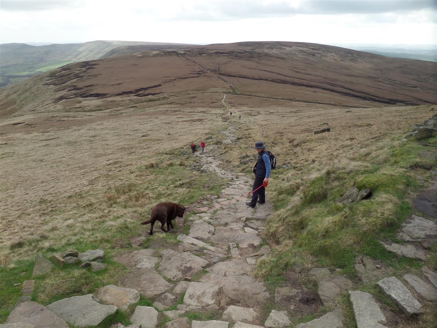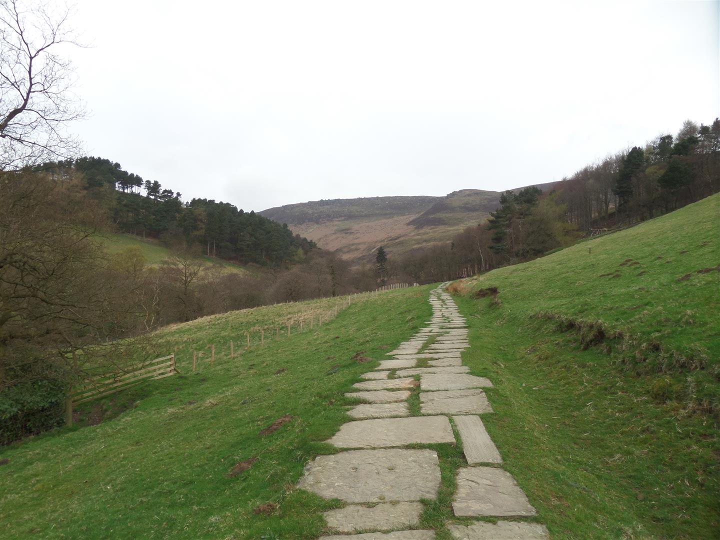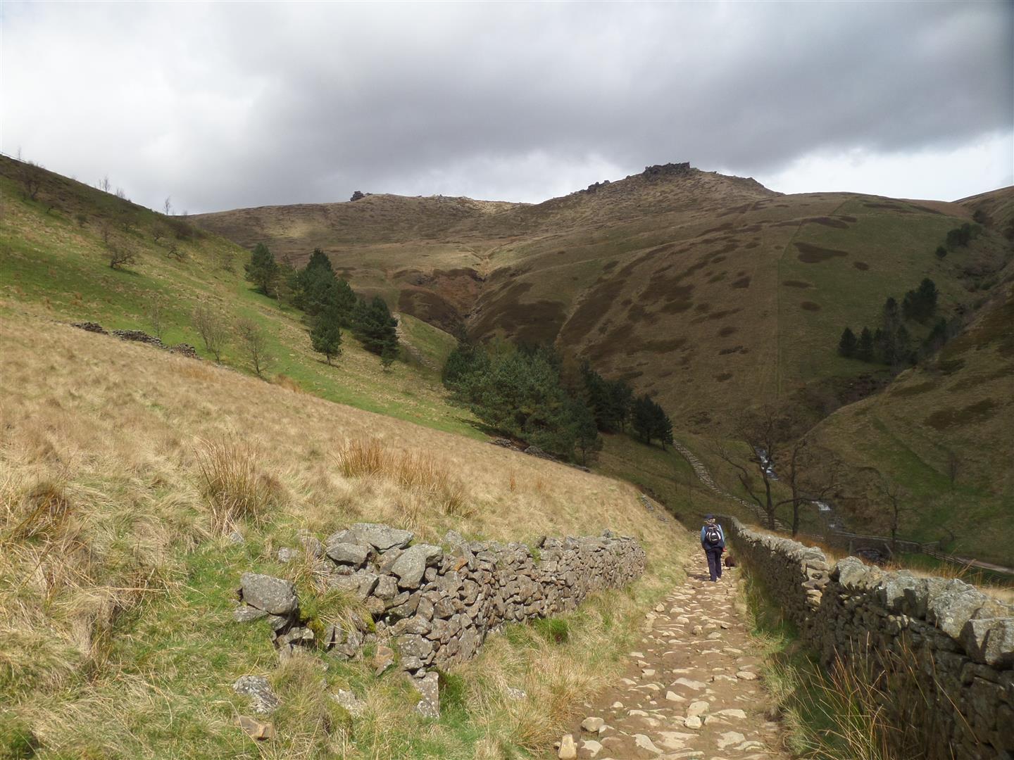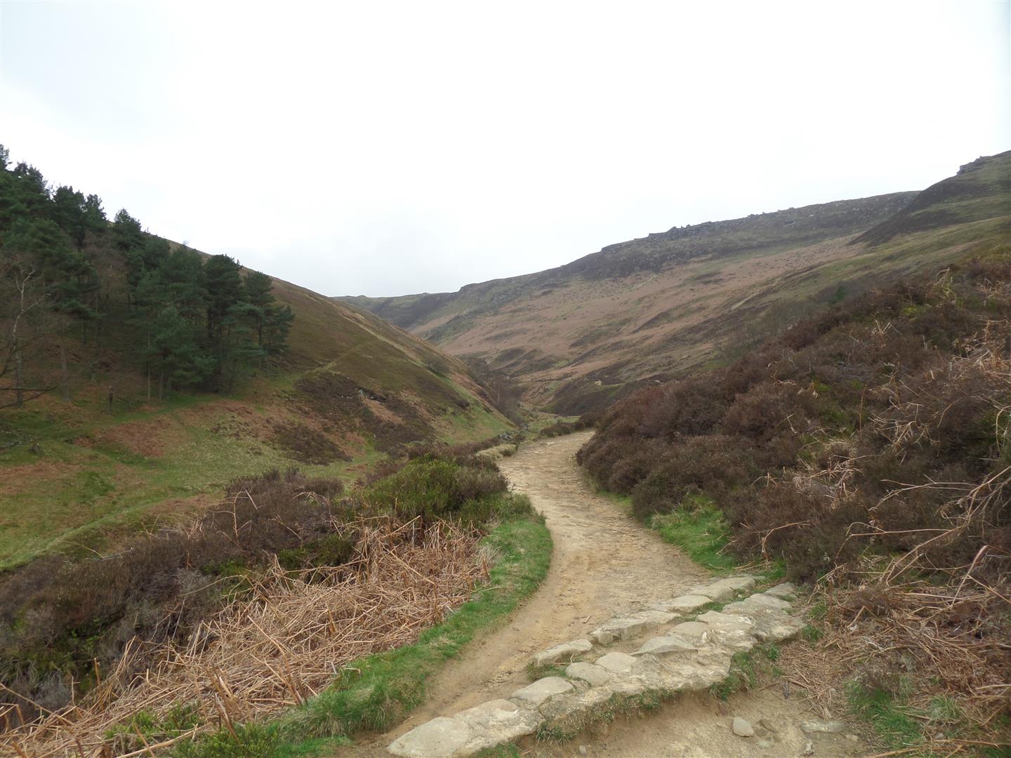 It used to go straight out the top of Edale village and onto the Kinder Scout massif via the Grindbrook Clough valley, but was changed to go to the head of Edale valley, and use the Jacob's Ladder path instead.