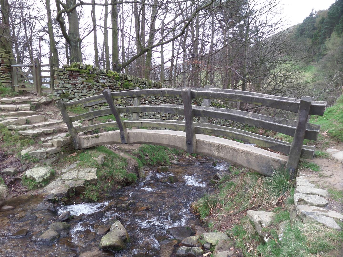 We passed under The Nab, and as the valley narrowed we crossed a rustic foot bridge and entered open country.