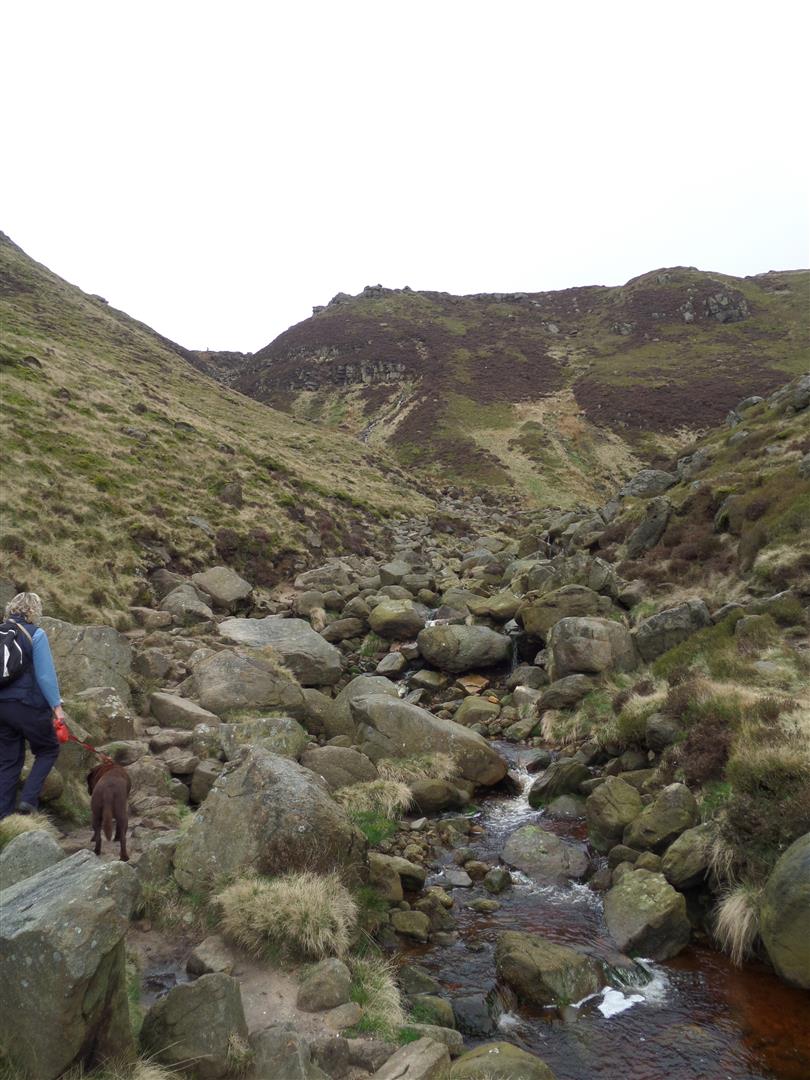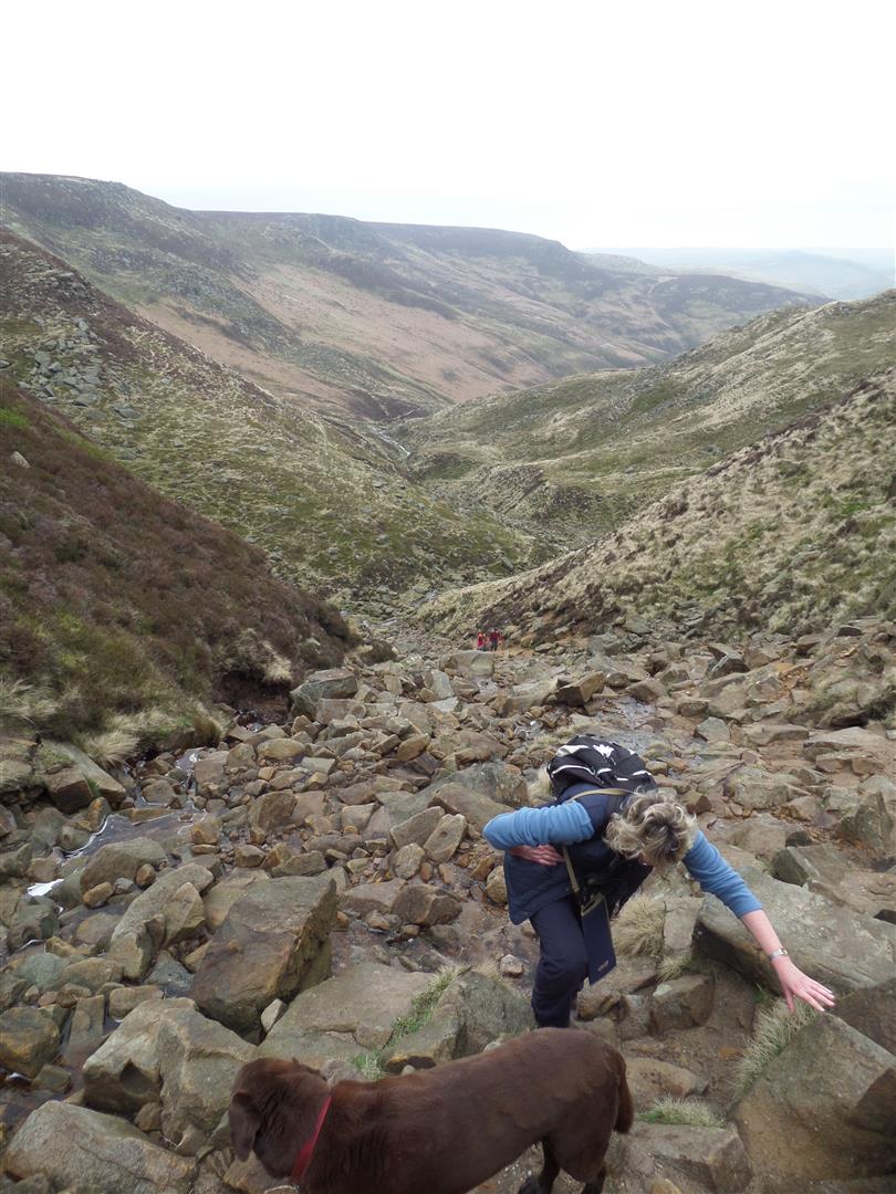 Jacob's Ladder is a very steep climb (or descent in our case) from the valley bottom and high ground. Thinking it was going to be a boulder scramble, like we'd already down in Grindbrook Clough, we opted instead to follow the optional bridleway which looped round the hill.