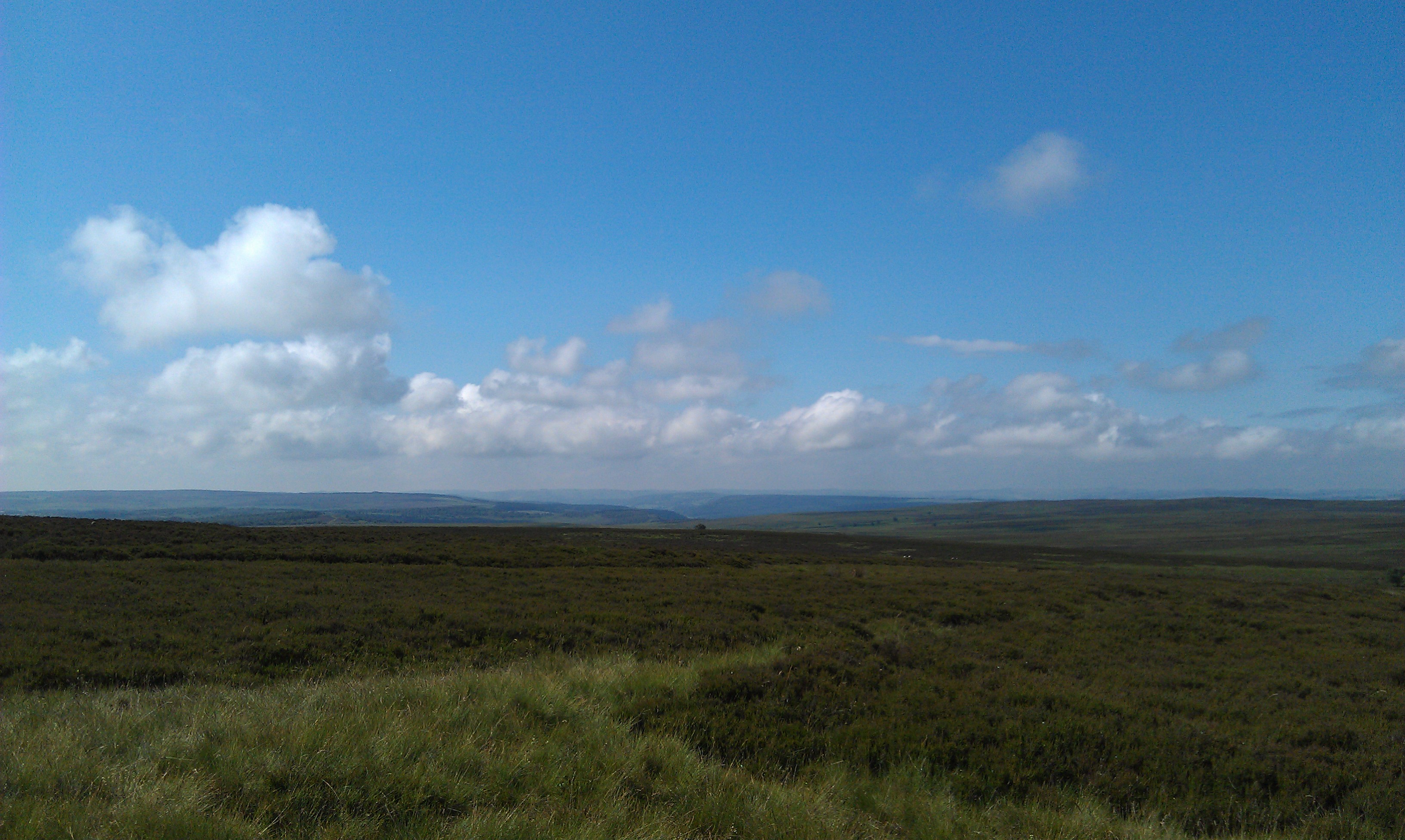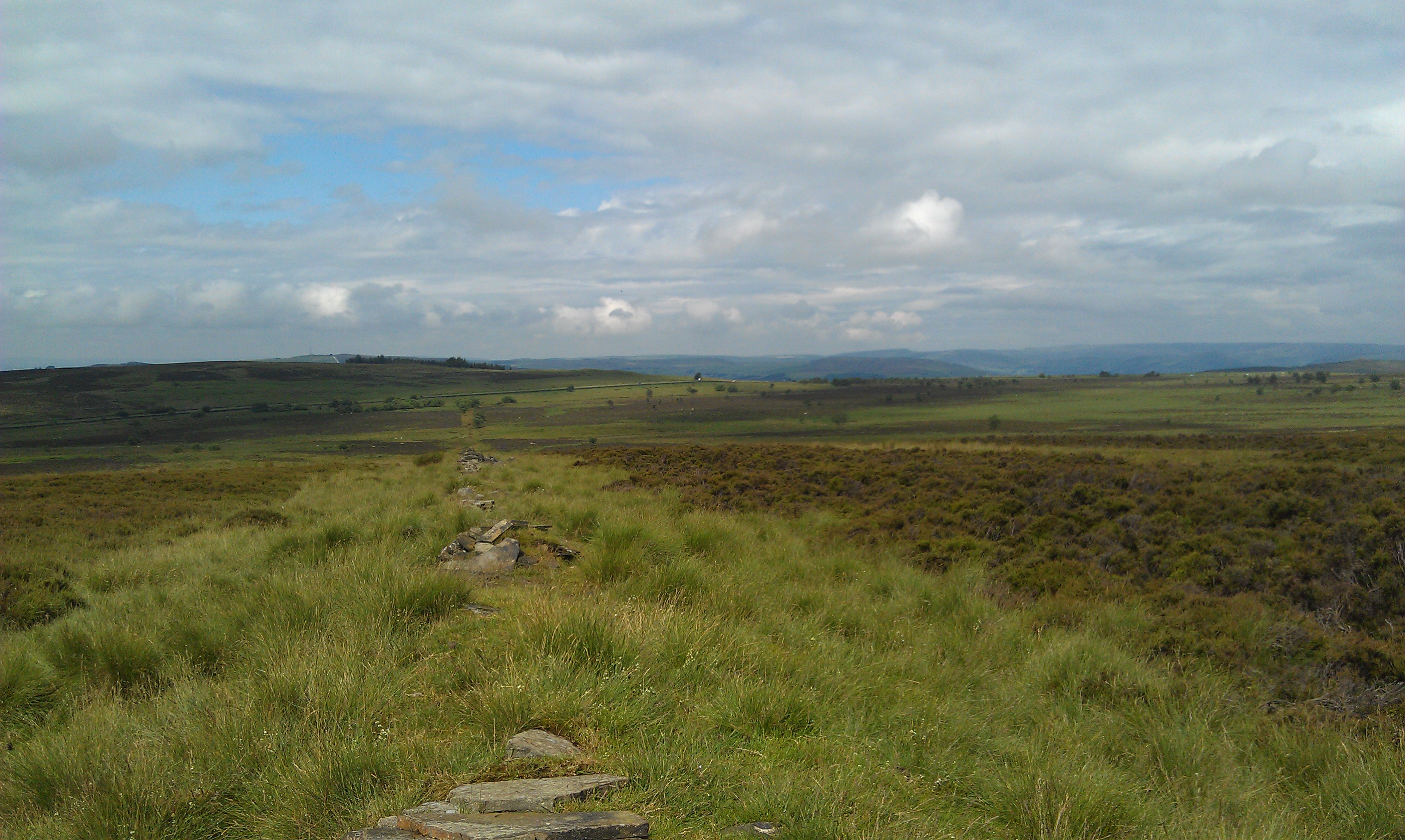 You can go straight across and look at the view from the cairn on Brown Edge if you like, otherwise turn left and follow the track until you meet the Moss Road, another old byway.