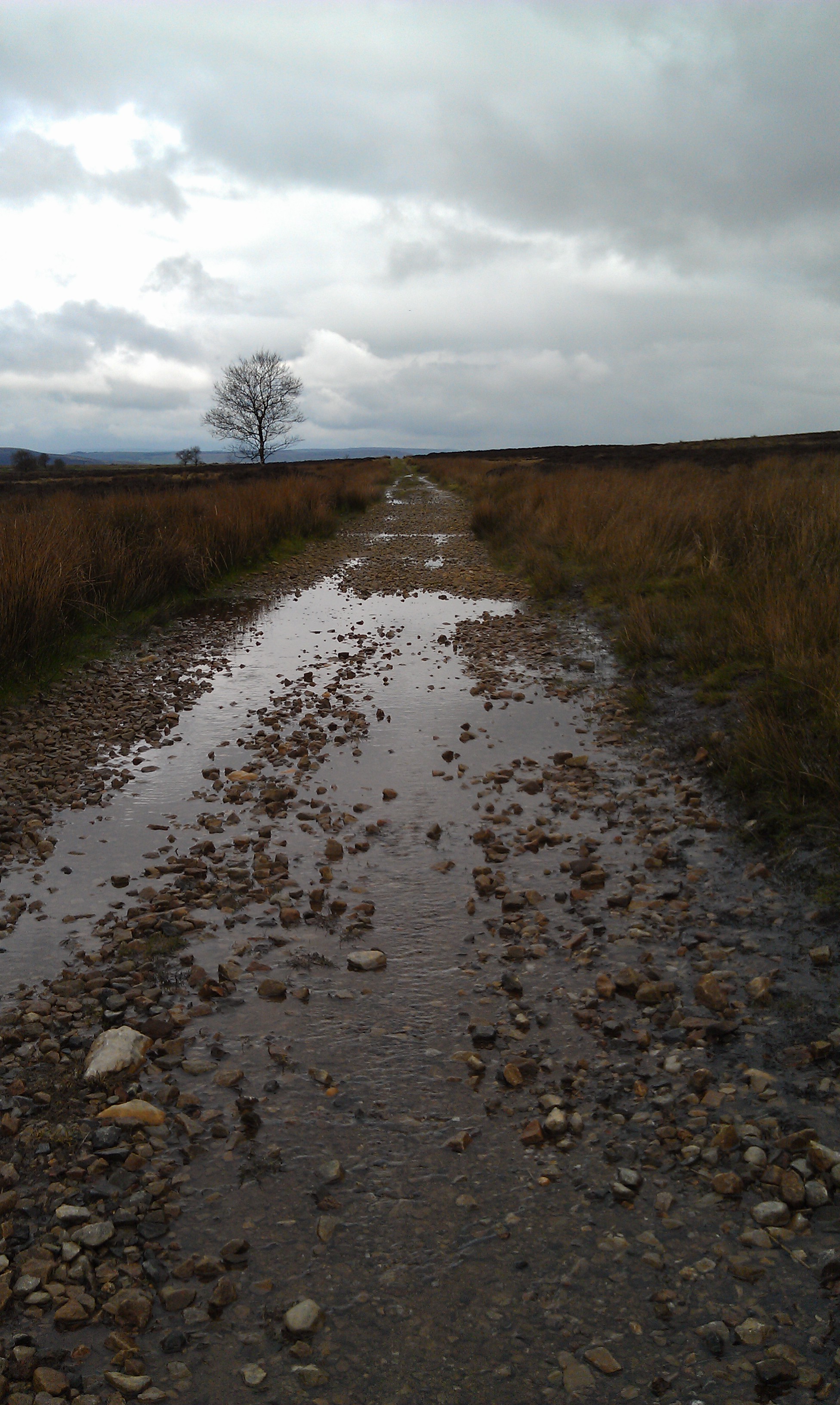 When you are met by the path coming up through the little pass from the Lodge turn left and head out across the moor and past Lady's Cross down to the gate and the road.
